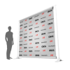 1. Marketing and Advertising: Branded backdrops serve as effective marketing tools, providing a visually impactful way to showcase a brand’s identity and key messages. They can be used in trade shows, product launches, and promotional events to attract attention, reinforce brand recognition, and communicate brand values.